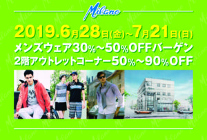 2019年6月28日(金)からバーゲンを行います。