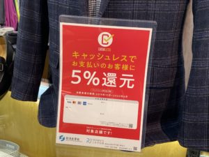 消費税増税に伴い、当店もキャッシュレスでお支払いのお客様に5%還元の対象店です。